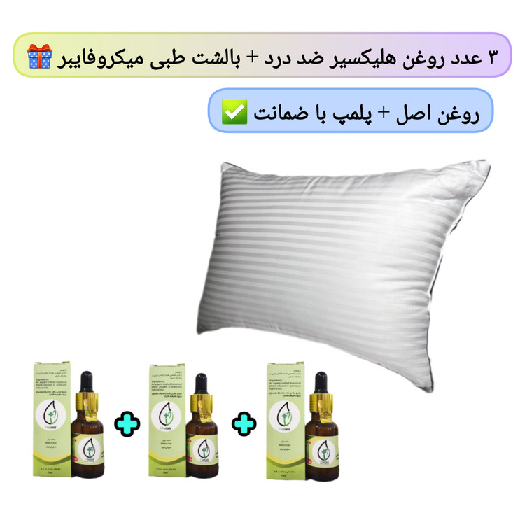 | خرید اقلام به صورت جداگانه | ۳ عدد روغن هلیکسیر + ۱ عدد بالشت طبی | ۵,۶۱۰,۰۰۰ تومان |